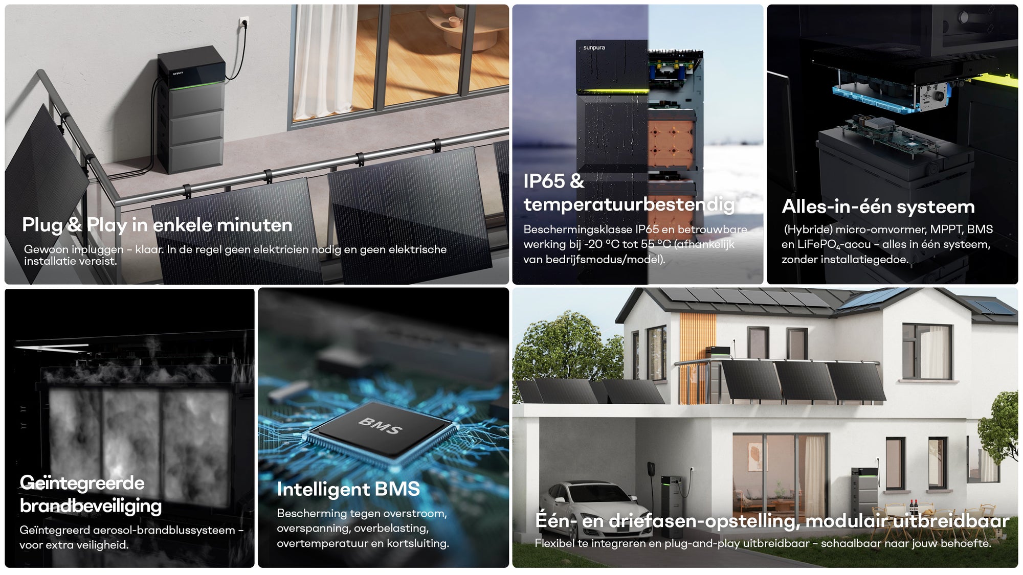 Sunpura staat voor veilige en slimme energiesystemen. Onze opslagsystemen zijn volledig afgestemd op de behoeften van onze klanten. Met innovatiekracht en technologische excellentie ontwikkelen wij krachtige all-in-one oplossingen voor meer controle, efficiëntie en veiligheid.