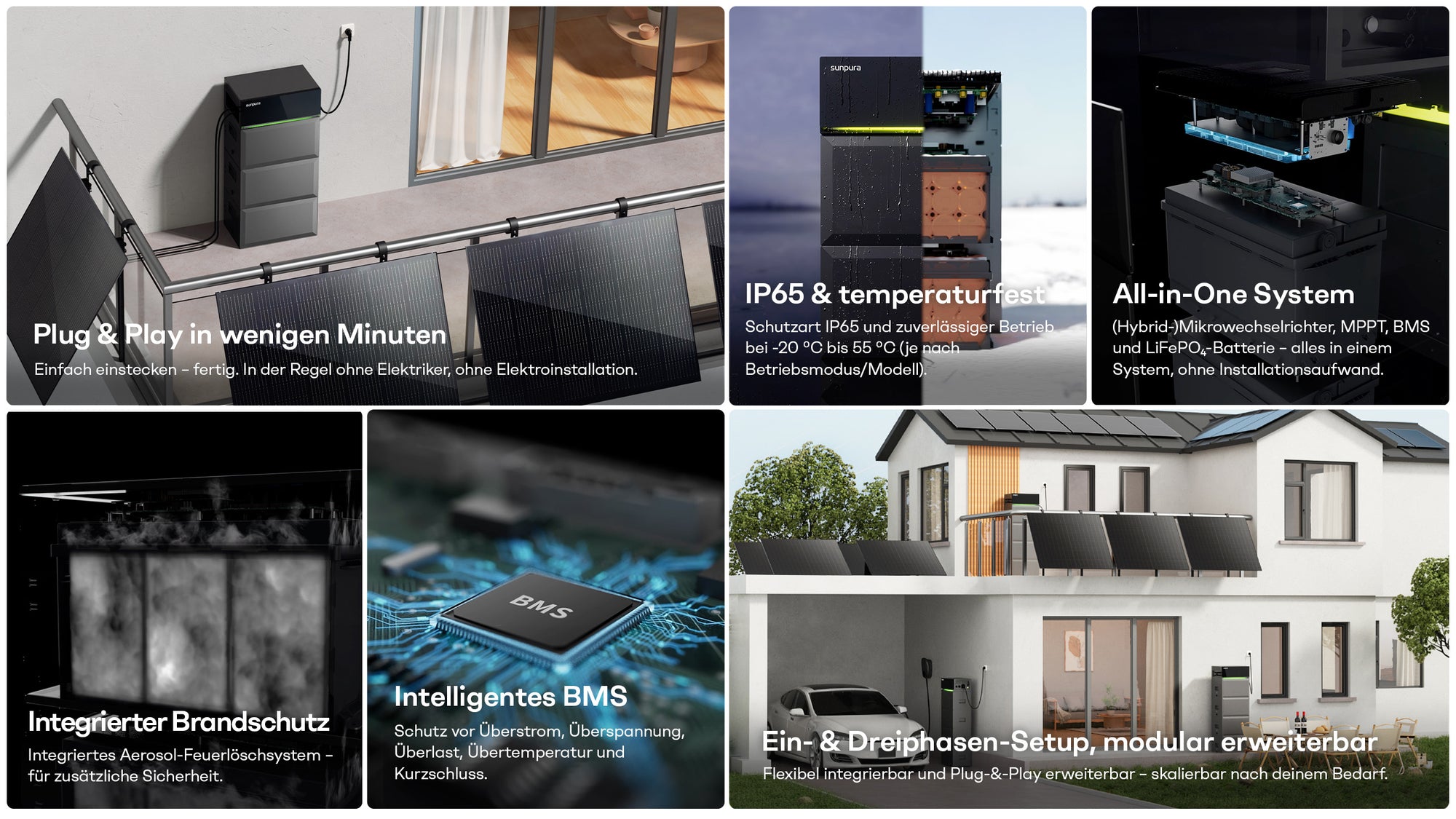 Sunpura S2400 Balkonkraftwerk Speicher – 2,4 kWh Plug & Play mit Stecker