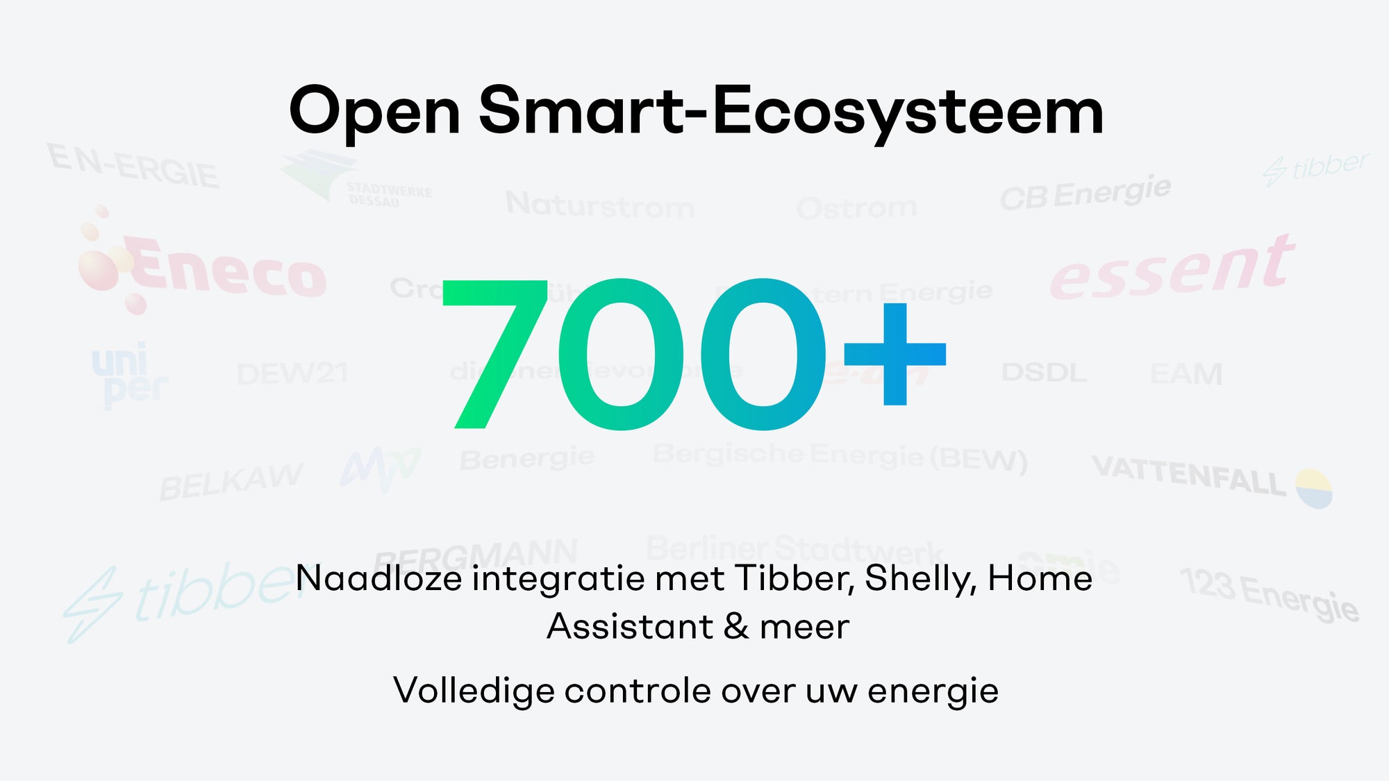 Verbind je thuisbatterij naadloos met meer dan 700 energieleveranciers en toonaangevende smart home-merken zoals Shelly, Tibber en Home Assistant. Van dynamische tarieven tot de aansturing van laadpalen en warmtepompen – alles in één systeem.